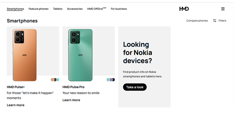 Tidak ada lagi daftar smartphone Nokia bila mengakses laman "Smartphone" di situs web HMD Global. Hanya terlihat ponsel pintar bermerek HMD yang dirancang perusahaan belakangan ini.