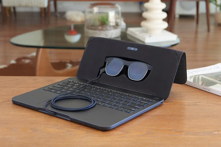 Sebagai gantinya,Spacetop G1 dibekali kacamata NReal,yang mampu menampilkan layar virtual seluas 100 inci. Layar besar ini hanya bisa dilihat oleh pengguna yang mengenakan kacamata itu.