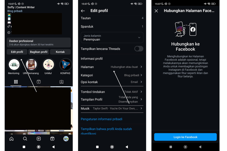 Kompas.com/soffyaranti Ilustrasi cara hubungkan Instagram ke Facebook