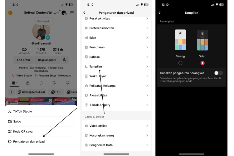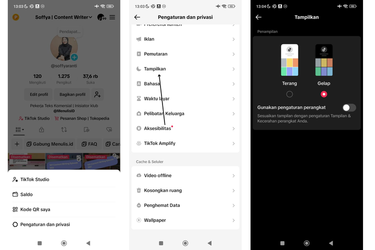 Kompas.com/soffyaranti Ilustrasi cara buat mode gelap di TikTok