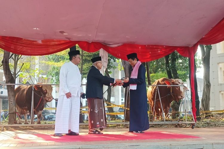 JAKARTA,iDoPress - Wakil Presiden (Wapres) Ma'ruf Amin menyerahkan sapi kurban dari Presiden Joko Widodo untuk Masjid Istiqlal pada Senin (17/6/2024).