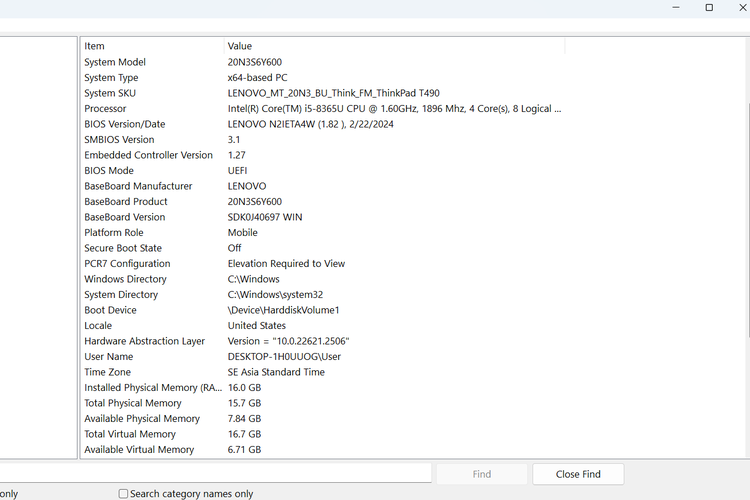 Setelah itu,pengguna bakal bisa melihat beberapa spesifikasi laptop,seperti jenis prosesor,jenis kartu grafis,kapasitas dan jenis memori penyimpanan,dan masih banyak lagi.