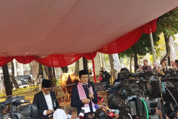 "Hari ini saya ingin sampaikan jumlah hewan kurban yang kita kumpulkan jumlah sapinya adalah 50 ekor sapi,yang kita saksikan adalah dari Pak Presiden,lalu Pak Wapres,ada juga Pak Prabowo,Pak Gibran,Bu Mega," ujar Nasaruddin di Masjid Istiqlal,Jakarta,Senin (17/6/2024).