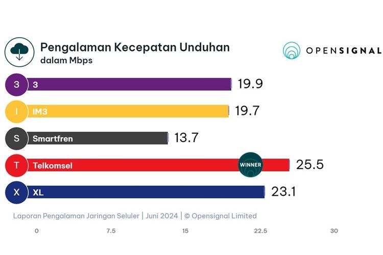 OpenSignal Grafik pengalaman kecepatan unduhan laporan OpenSignal Juni 2024