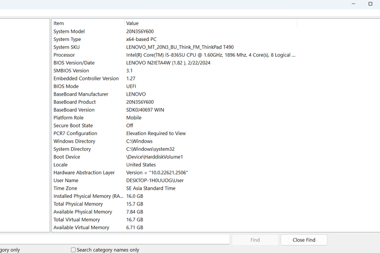 Terakhir,sistem bakal menampilkan informasi jenis prosesor dan beberapa spesifikasi laptop lain,dan lainnya.