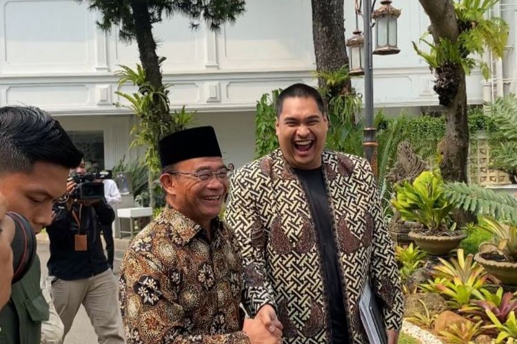 JAKARTA,KOMPAS.com - Menteri Pemuda dan Olahraga (Menpora) Dito Ariotedjo menggoda Menteri Koordinator Bidang Pembangunan Manusia dan Kebudayaan (Menko PMK) Muhadjir Effendy dengan sebutan "Ketua Tambang" saat berada di Istana Kepresidenan,Jakarta,Kamis (1/8/2024).