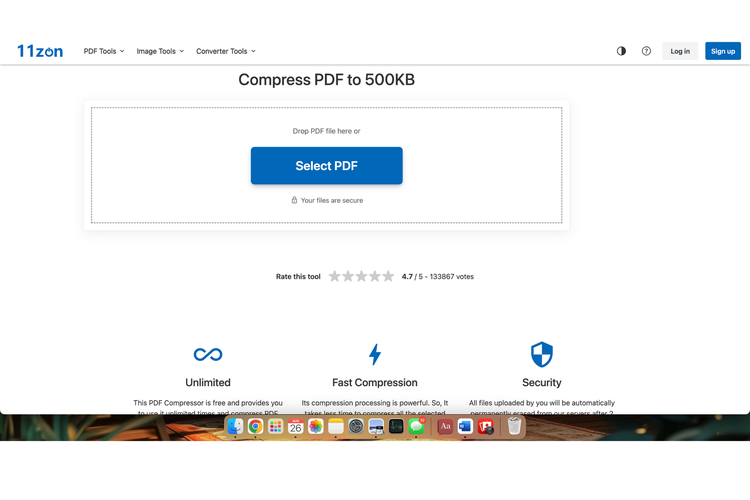 Setelah file diunggah,situs akan secara otomatis mengompres
