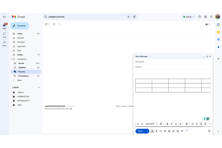 Kompas.com/soffyaranti Ilustrasi cara salin tabel di Gmail
