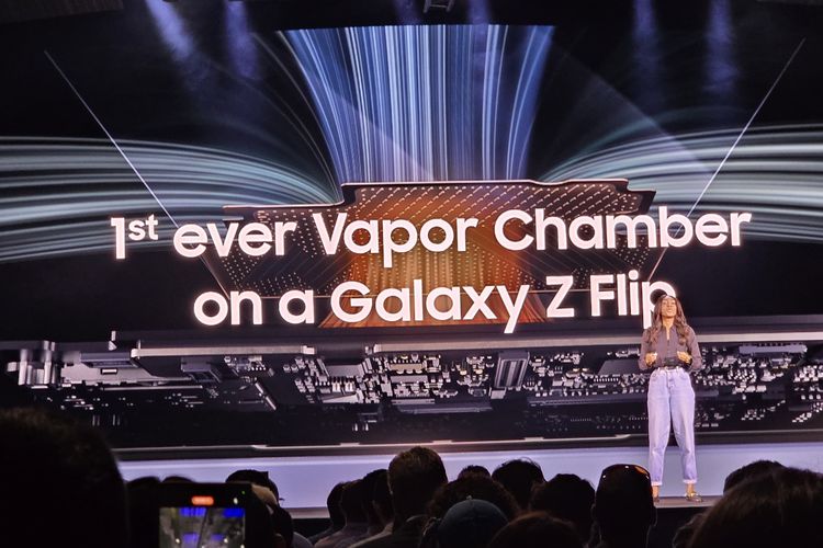 KOMPAS.com/Galuh Putri Riyanto Stephanie Chosen,Smartphone Marketing Samsung mengatakan bahwa ini adalah pertama kalinya Samsung membenamkan pendingin Vapor Chamber di seri Galaxy Z Flip.
