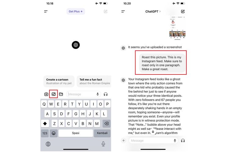 KOMPAS.com/Wahyunanda Kusuma Pertiwi Ilustrasi cara membuat ChatGPT roast Instagram Feed.
