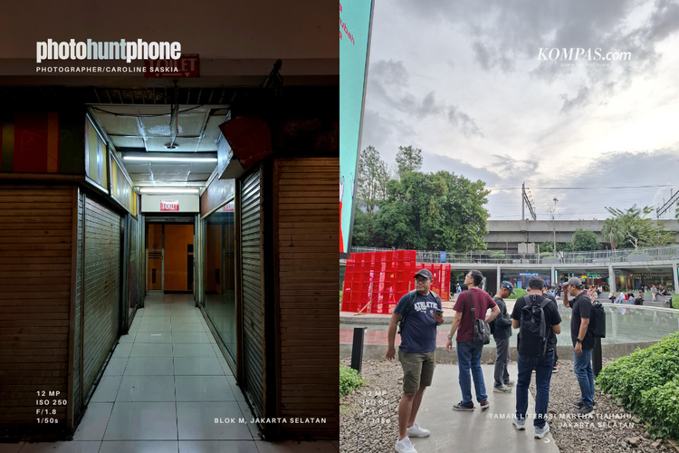 KOMPAS.com/Caroline Saskia Tanoto Perbandingan hasil foto di kondisi minim cahaya (Blok M Mall) dan oudoor (Taman Literasi Martha Tiahahu). Walau keduanya memiliki perbedaan tingkat kecerahan,Samsung Galaxy A55 masih tetap mampu menampilka gambar dengan kontras dan detail yang cukup baik