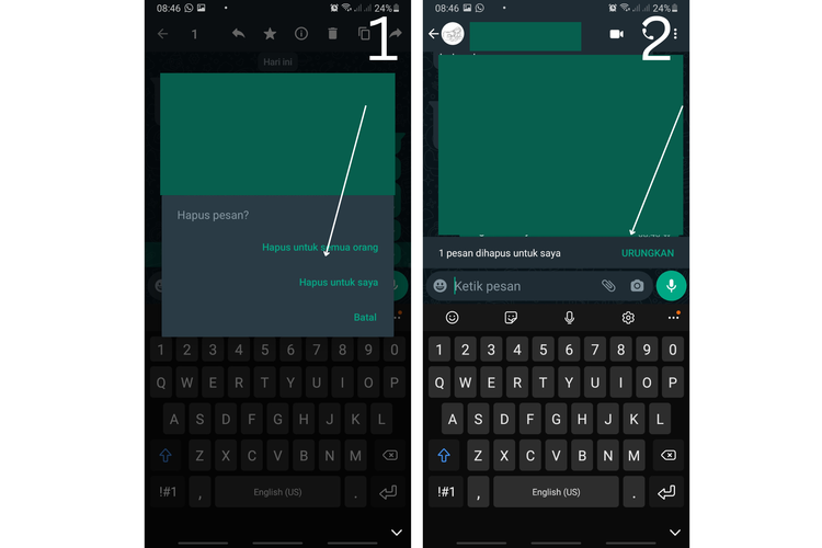Ketika pengguna baru saja menghapus pesan di ruang obrolan dengan opsi “hapus untuk saya”,WhatsApp bakal memunculkan opsi di layar untuk mengurungkan menghapus pesan. Pada opsi itu,pengguna bisa klik tombol “Urungkan” atau “Undo”.