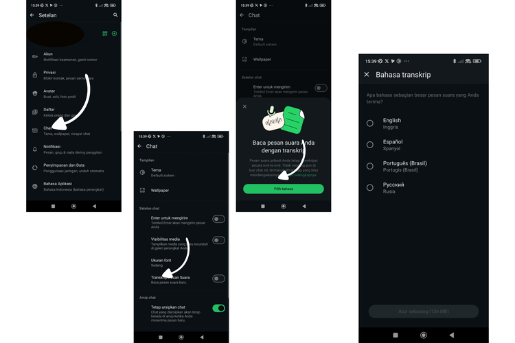 Kompas.com/soffyaranti Ilustrasi cara aktifkan transkrip voice note