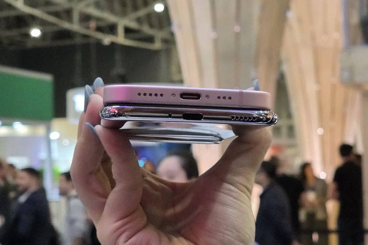 Jurnalis iDoPress Galuh Putri Riyanto yang hadir di venue MWC 2025 berkesempatan melihat,memegang,dan menjajal langsung HP tipis ini saat mengunjungi booth Tecno pada Senin (3/3/2025).