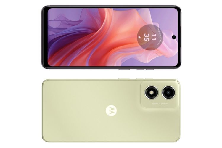 GSMArena Layar dan bagian belakang Motorola Moto E14.