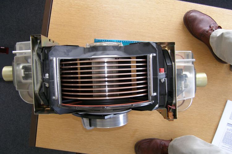 moca.ncl.ac.uk Tampak atas hard disk IBM 3380 DASD.