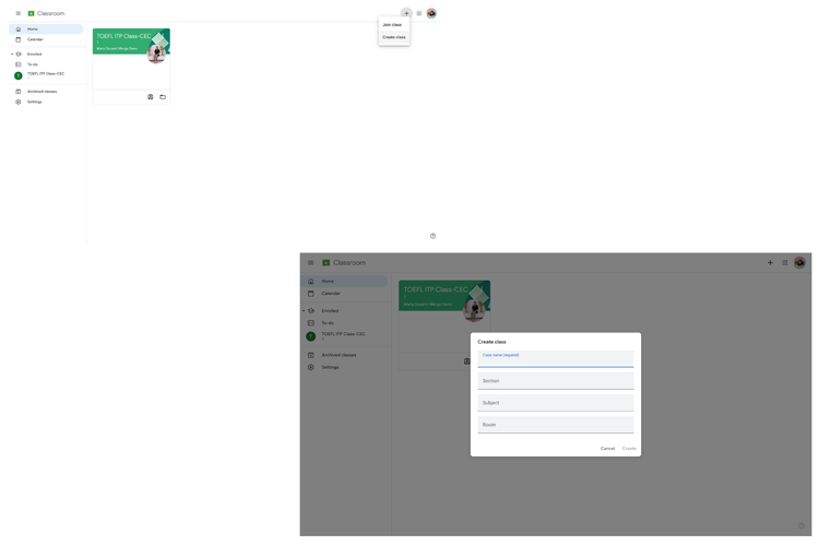 Klik tanda "+" di pojok kanan atas dan pilih "Buat kelas" untuk membuat kelas baru