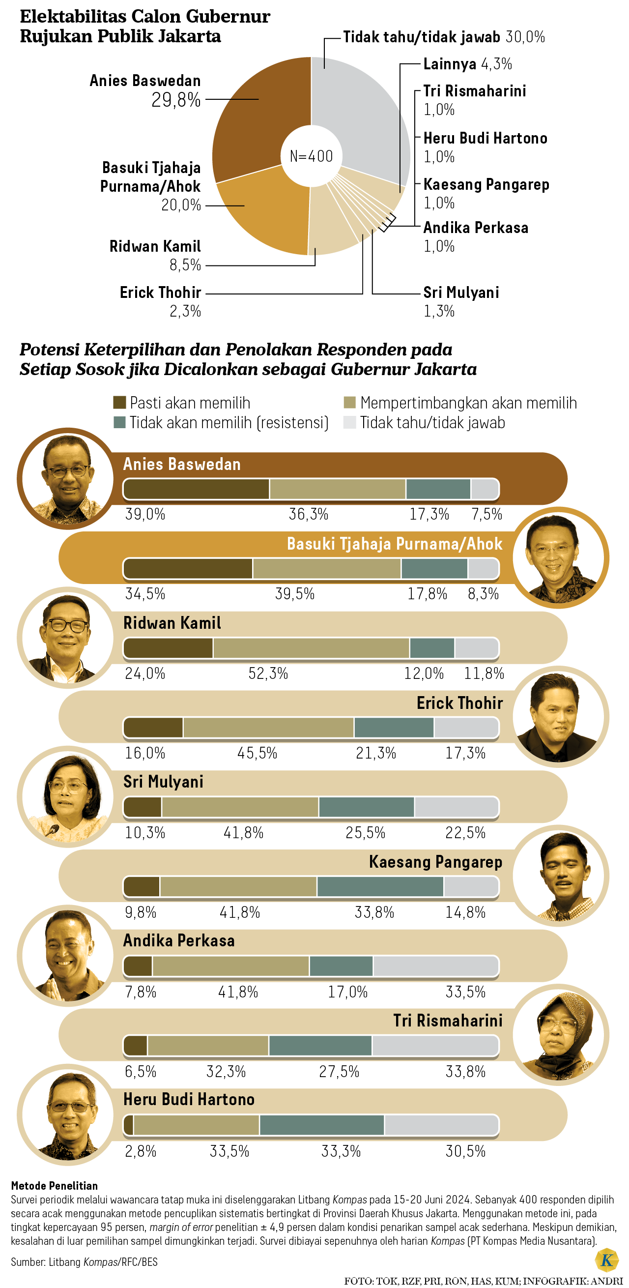Survei Litbang Kompas ini dilakukan pada 15-20 Juni 2024,dengan melibatkan sebanyak 400 responden yang dipilih secara acak menggunakan metode pencuplikan sistematis bertingkat di Provinsi Daerah Khusus Jakarta.