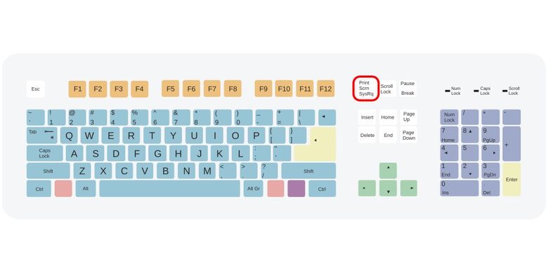 Wikipedia/ Stannered Tombol Print Screen di keyboard dengan layout standar 104-tombol