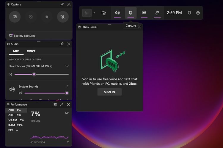 KOMPAS.com/ OIK YUSUF Tampilan toolbar dan widget Game Bar