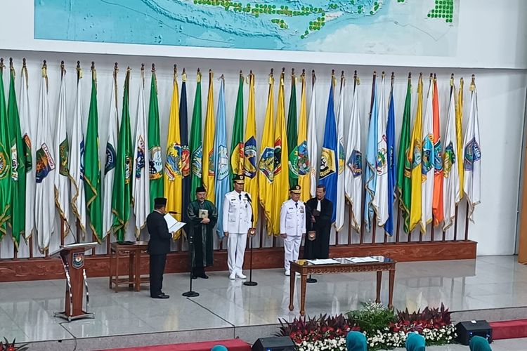 Setelahnya,kedua pj gubernur diminta membaca sumpah yang dipandu secara langsung oleh Mendagri Tito Karnavian.