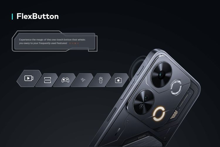 Tersedia pula tombol yang disebut FlexButton,diposisikan di atas tombol volume. FlexButton bisa dipakai untuk mengakses cepat fitur yang paling sering dipakai pengguna,misalnya untuk memotret foto,screenshot,menyalakan senter dan lain sebagainya.