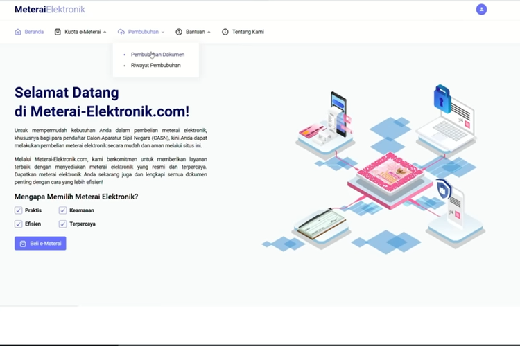 Peruri Ilustrasi cara beli e-meterai buat daftar CPNS 2024 di meterai-elektronik.com.