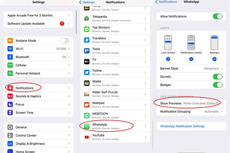 Dengan memilih opsi itu,pratinjau isi pesan WhatsApp tidak akan ditampilkan di layar kunci.