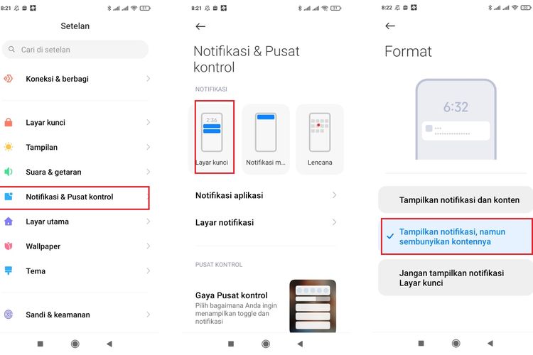 Selanjutnya,buka menu “Format” dan pilih opsi “Tampilkan notifikasi,namun sembunyikan kontennya”.