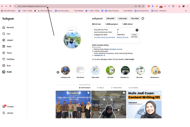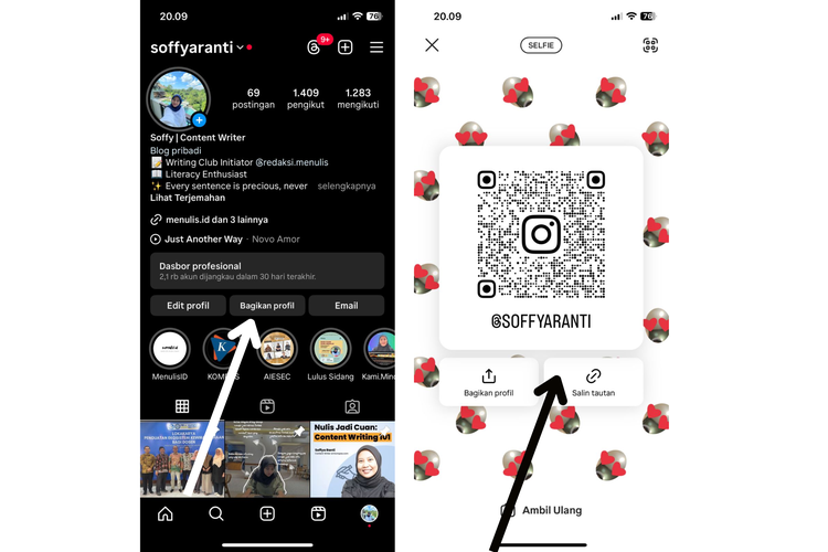 Selanjutnya link profil Instagram tersebut bisa dibagikan ke berbagai platform atau media lain