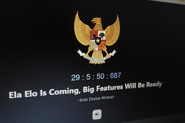 Di bawahnya,terdapat tulisan "Ela Elo is coming,big features will be ready -Iron Dome #Hmei" (Ela Elo segera hadir,fitur-fitur unggulan akan siap).