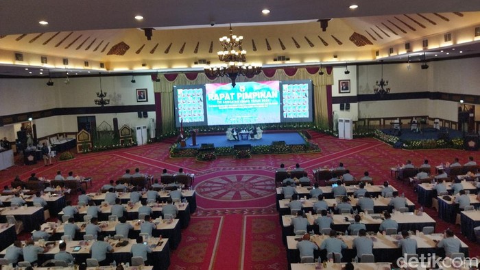 TNI Angkatan Udara (AU) menggelar Rapat Pimpinan (Rapim) tahun 2024. Rapim dibuka secara resmi oleh Kepala Staf AU (KSAU), Marsekal TNI Fadjar Prasetyo. (Kurniawan F/detikcom)