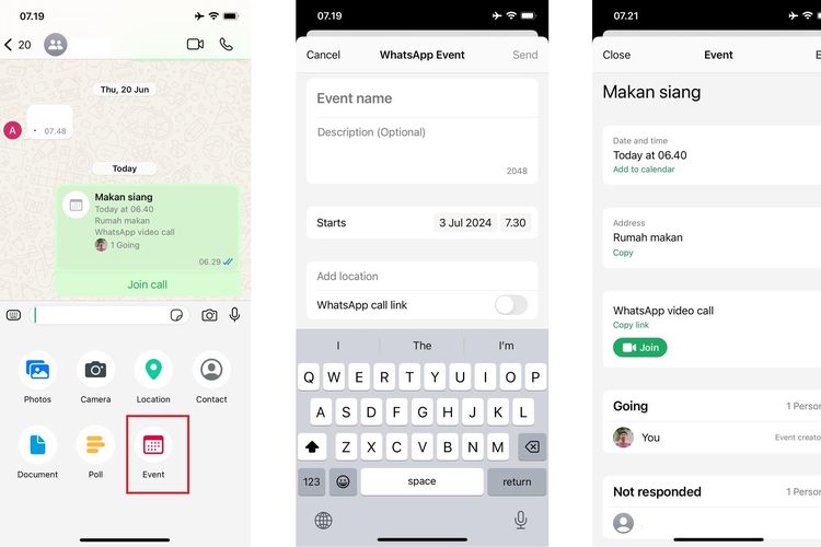 Adapun penjelasan yang lebih detail mengenai cara membuat undangan acara di grup WhatsApp lewat menu baru Event adalah sebagai berikut: