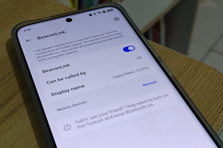 Kompas.com/BILL CLINTEN Cara pakai fitur BeaconLink di Oppo Reno 12 Series.