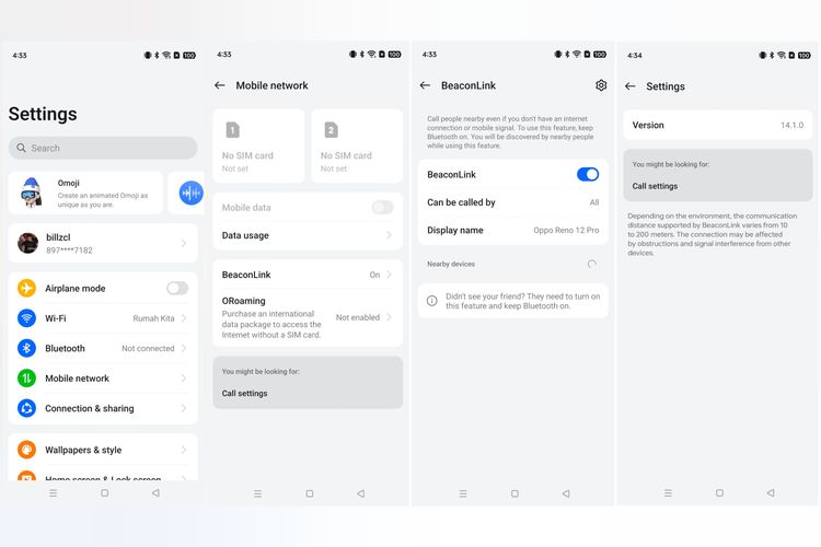 Cara menggunakan fitur BeaconLink di Oppo Reno 12 Series cukup mudah. Pertama-tama,pengguna perlu mengaktifkan fitur BeaconLink terlebih dahulu di ponsel mereka dan ponsel yang hendak ditelepon.