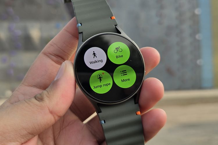 KOMPAS.com/ Galuh Putri Riyanto Samsung Galaxy Watch 7 dibekali lebih dari 100 jenis latihan/workout di antaranya berjalan,bersepeda,lari,loncat tali,mendaki,berenang,treadmill,aerobik,penahan,badminton,balet,baseball,bola basket,bench press,bowling,golf,berkuda,pilates,plank,push-up,sit-up,sepatu roda,squash,tenis,yoga,dan masih banyak lainnya.