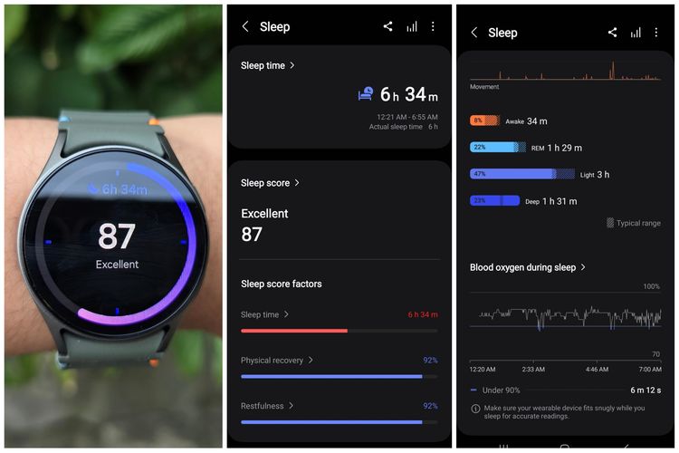Nanti,Galaxy Watch 7 akan otomatis melacak durasi tidur,kualitas tidur,siklus tidur,gerakan tidur,detak jantung saat tidur,bahkan suara ngorok.