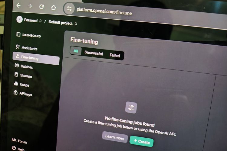 Untuk memakai fitur Fine-Tuning,para developer bisa langsung mengunjungi laman web dashboard fitur tersebut di tautan berikut ini (harus masuk/login menggunakan akun OpenAI terlebih dahulu).