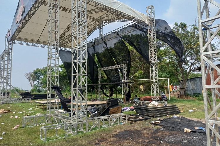 “Di panggungnya enggak ada orang,panitia enggak berani memunculkan diri saat pelaksanaannya sehingga sound(system) serta panggung dibakar dan sudah melebar ke mana-mana,” ujar Kapolsek Pasar Kemis AKP Ucu Nuryandi.