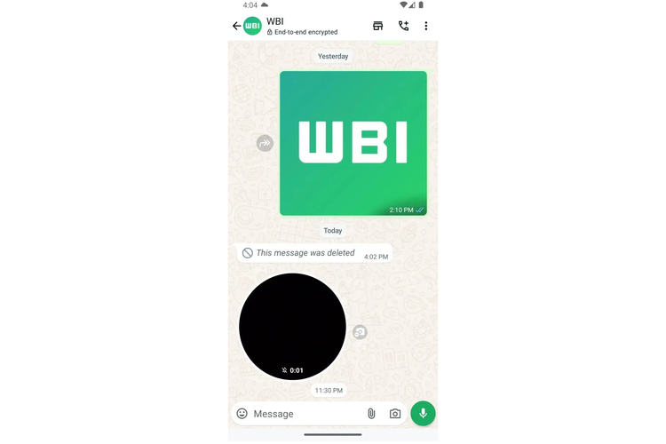 Dalam tangkapan layar (screenshot) yang dibagikan oleh WABetaInfo,dapat terlihat sebuah tombol menyerupai kamera yang diletakkan di sebelah kanan pesan video.