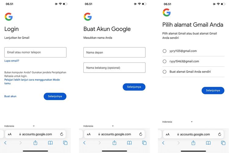Berikutnya,pengguna diminta untuk membuat alamat Gmail dengan nama identitas yang sesuai keinginan.