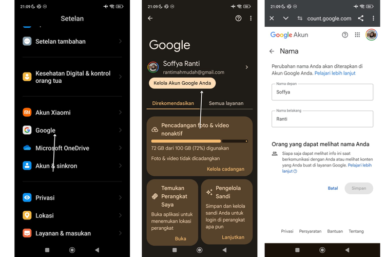 Kompas.com/soffyaranti ilustrasi cara ubah nama akun Google