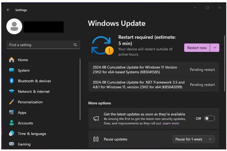 KOMPAS.com/ OIK YUSUF Tampilan menu Windows Update di Settings sistem operasi Windows 11