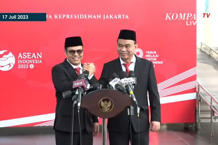 YouTube/ KompasTV Menkominfo Budi Arie Setiadi dan Wakil Menkominfo Nezar Patria setelah pelantikan di Istana Negara,Senin (17/7/2023).