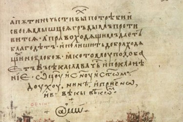 Tulisan tersebut menceritakan mengenai sejarah singkat dunia sampai akhir abad ke-11. Di dalamnya,simbol ‘@’ digunakan sebagai untuk ucapan “amin”.
