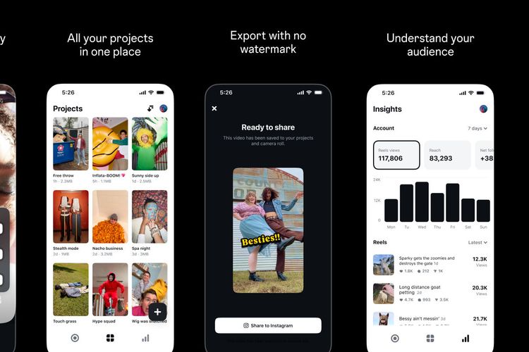 Namun,yang menjadi perbedaan antara CapCut dan Edit adalah pengguna Instgaram dapat meninjau perfoma dari konten yang dibagikan lewat data metrik. Di dalam aplikasi,terdapat Insight yang sama seperti dashboard di Instagram.