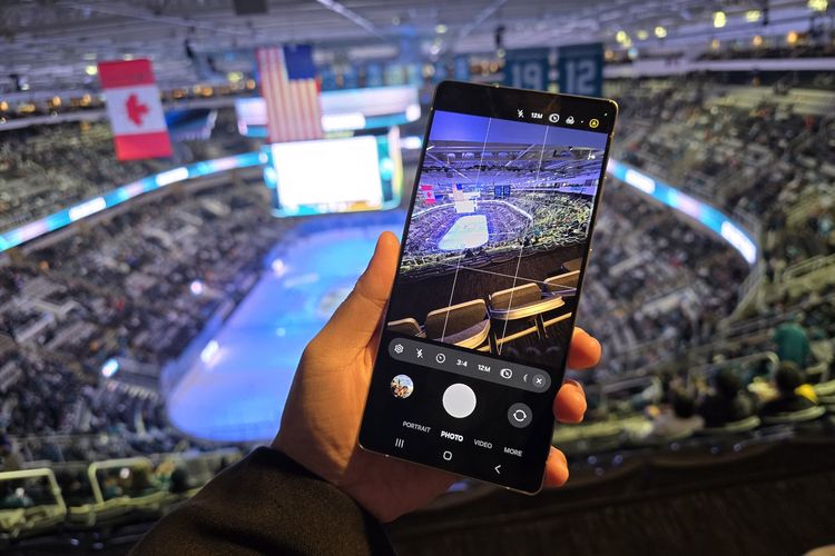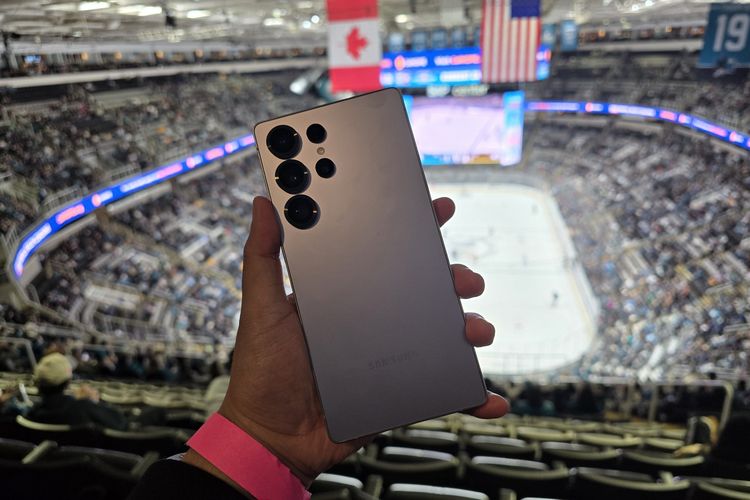 Kamera Galaxy S25 Ultra tersebut diuji kemampuannya untuk merekam pertandingan hoki es National Hockey League (NHL) atau ice hockey,antara tuan rumah San Jose Sharks lawan Nashville Predators di stadium SAP Center,San Jose,California,AS.