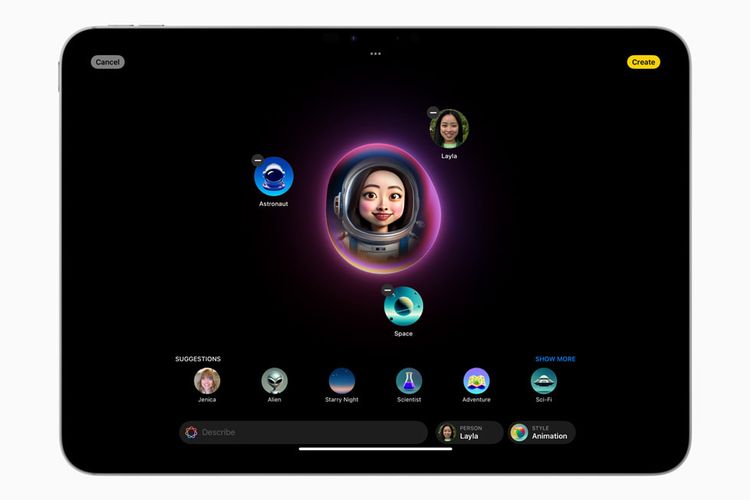 Dalam pengolahan gambar,Apple Intelligence juga menghadirkan aplikasi Image Playground yang bisa dipakai untuk membuat gambar berdasarkan teks. Di aplikasi ini,pengguna nantinya juga bisa membuat gambar berdasar saran yang diberikan.
