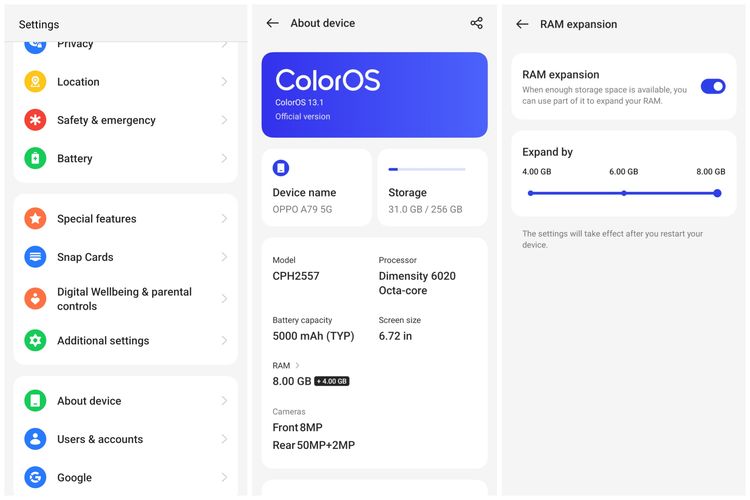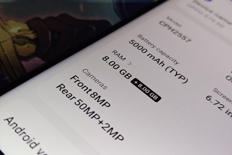 Seperti namanya,fitur ini memungkinkan pengguna "menambah" kapasitas RAM yang ada di Oppo A79 5G dari semula 8 GB menjadi 16 GB (dua kali lipat).