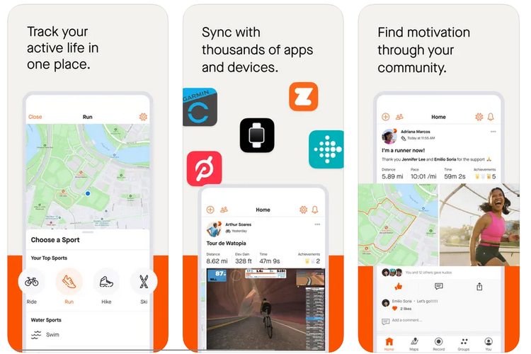 Aktivitas itu bisa berlari,bersepeda,atau mendaki. Tiap melakukan aktivitas tersebut,aplikasi Strava bakal mencatatkan beberapa capaian pengguna,seperti waktu yang ditempuh,jarak yang ditempuh,dan rute yang dilewati.